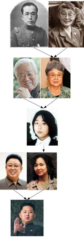 まず一般的に言われている金正恩氏の家系図をご覧ください。
