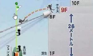 先ほどの転落について振り返ると9m先のフェンスに落下しています。